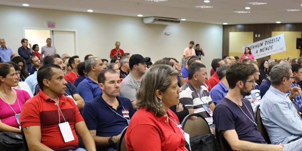 Após a abertura solene, foi realizada a mesa de debates com o tema “A crise mundial, o golpe no Brasil e as consequências para os trabalhadores”, com os palestrantes João Felício, presidente da Confederação Sindical Internacional (CSI) e o juiz Luiz Antonio Colussi, diretor legislativo da Associação Nacional dos Magistrados do Trabalho (Anamatra).